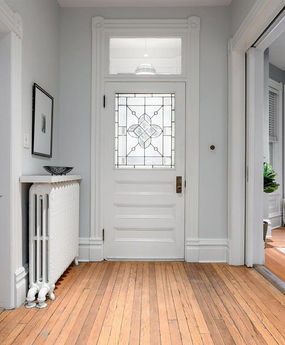 The property has a gorgeous backyard with a vegetable garden and greenhouse. The garage has space for one vehicle, and a second vehicle can park in one of two driveways. A brand new basement reno has been completed this summer, with new flooring and bathroom fixtures. An excellent open space to create your own rec room for personal hobbies. There is a wood burning fireplace in the living room to create a cozy atmosphere during the winter nights. The home was built in the 1940s and has lots of character with antique glass door handles and crown molding.
